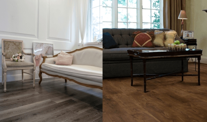 Усовершенствованная кварц-виниловая LVT плитка. Экологичная виниловая плитка с текстурой натурального дерева или камня.