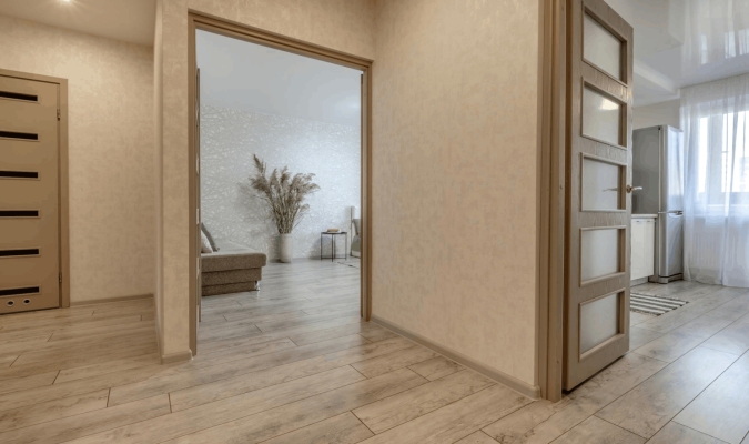 Покрытие можно укладывать единым полотном в одном помещении площадью до 650 м² — без порогов и дополнительных соединений. Важно помнить, что ширина помещения должна составлять не менее 50% длины.