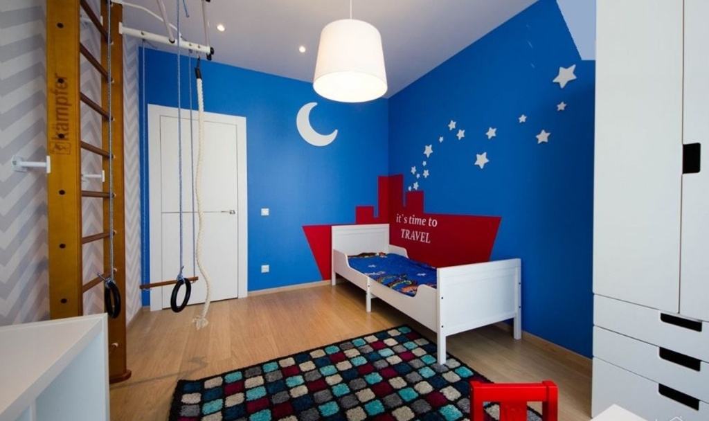 Синий в детской комнате обычно выбирают для мальчиков, однако нежный голубой подойдет и для пространства девочки. Такие оттенки будут расслаблять и успокаивать ребенка, особенно гиперактивного.