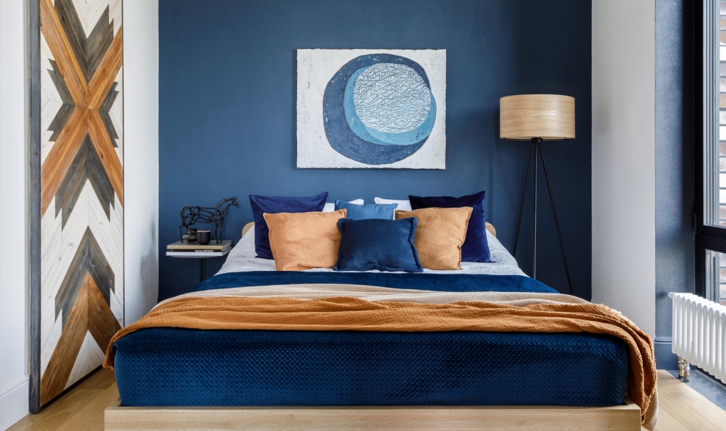 Синий ассоциируется с морем, небом, отдыхом и покоем, поэтому он идеально подходит для создания расслабляющей атмосферы, будь то спальня или гостиная.