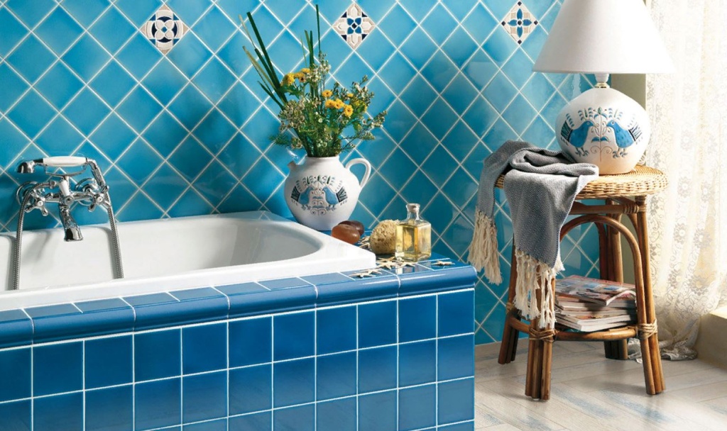 Синий цвет в ванной всегда будет выглядеть уместно благодаря ассоциации с водой. Светлые и насыщенные оттенки синего на плитке или стенах делают пространство свежим, а белые элементы добавляют ощущение чистоты пространства.