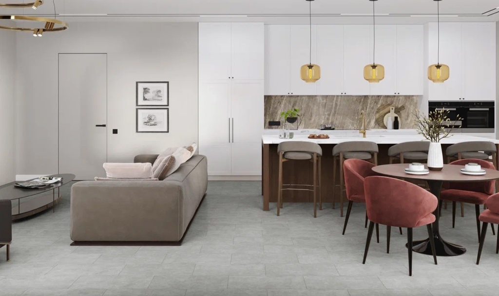 Стоит сказать, что керамогранит является наиболее универсальным покрытием - он безопасный, износостойкий, влагостойкий и долговечный. Однако и минусы у такой отделки пола есть - керамогранит жесткий, скользкий и холодный, если нет подогрева. Все же для жилых комнат - вариант не самый приоритетный. А вот для санузлов, коридора, кухни и общественных мест с большой проходимостью - идеально.