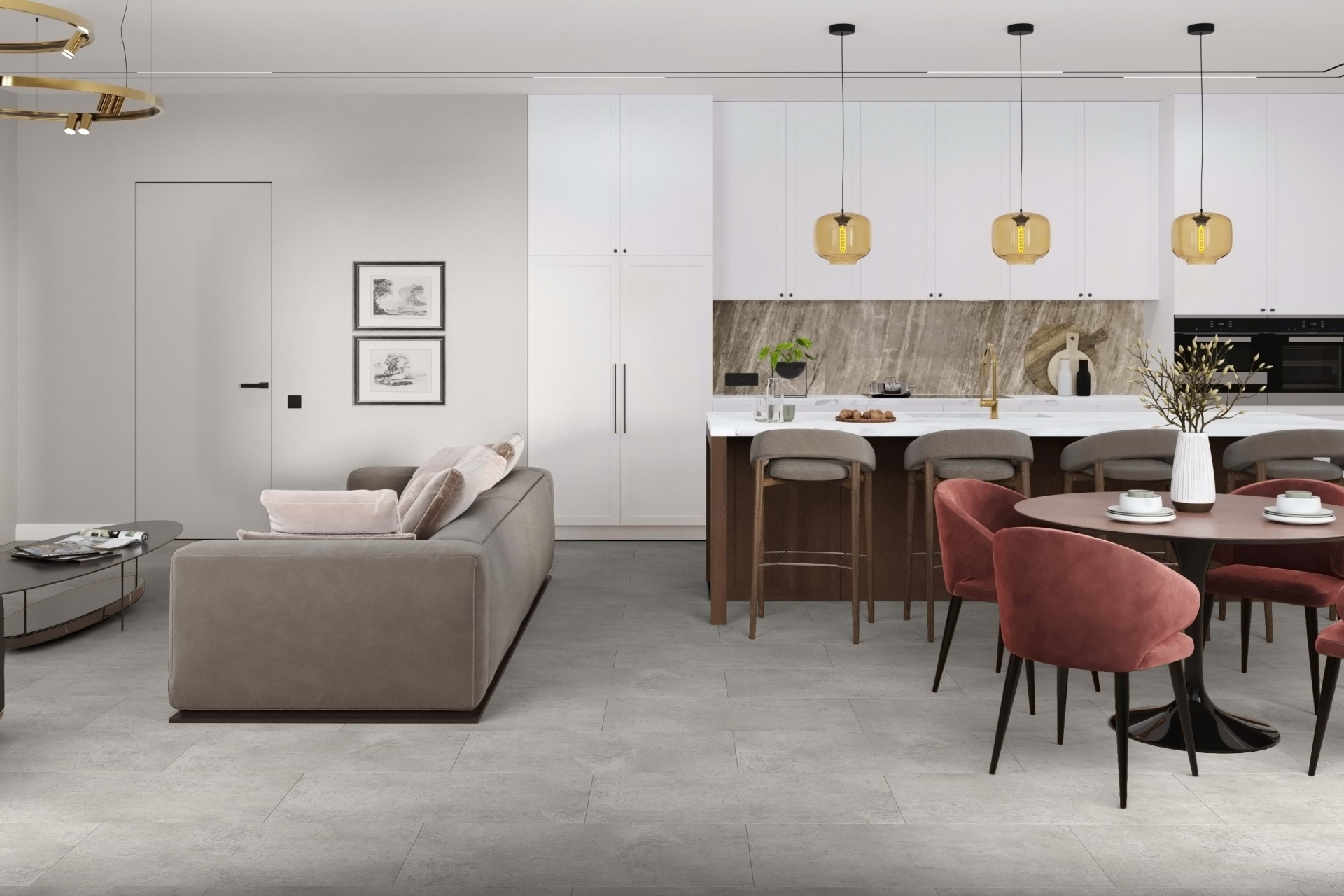 Усовершенствованная кварц-виниловая LVT плитка из коллекции Ascent подойдет для сдержанных