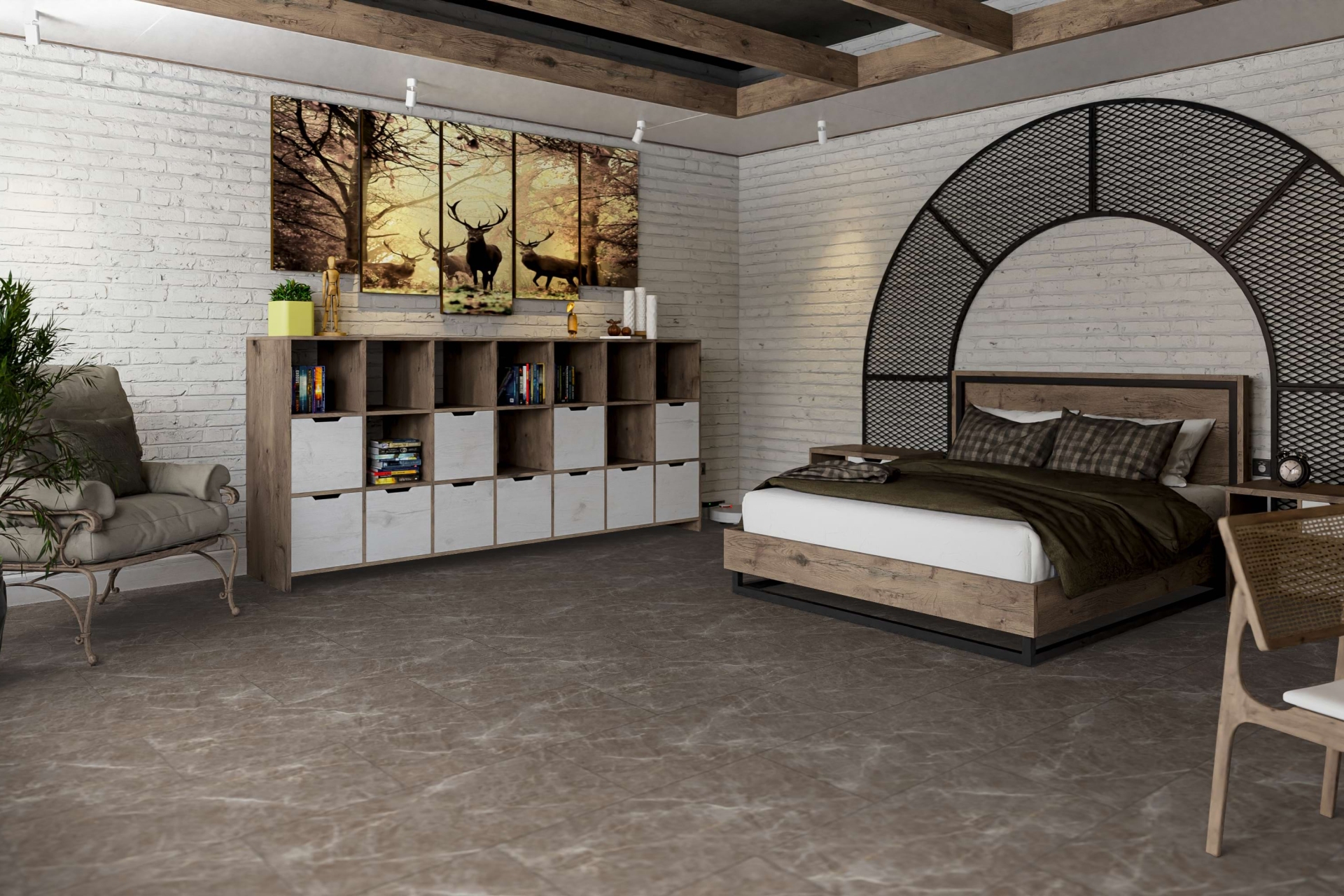 Помещение с LVT-плиткой DAMY FLOOR выглядит эффектно и благородно.