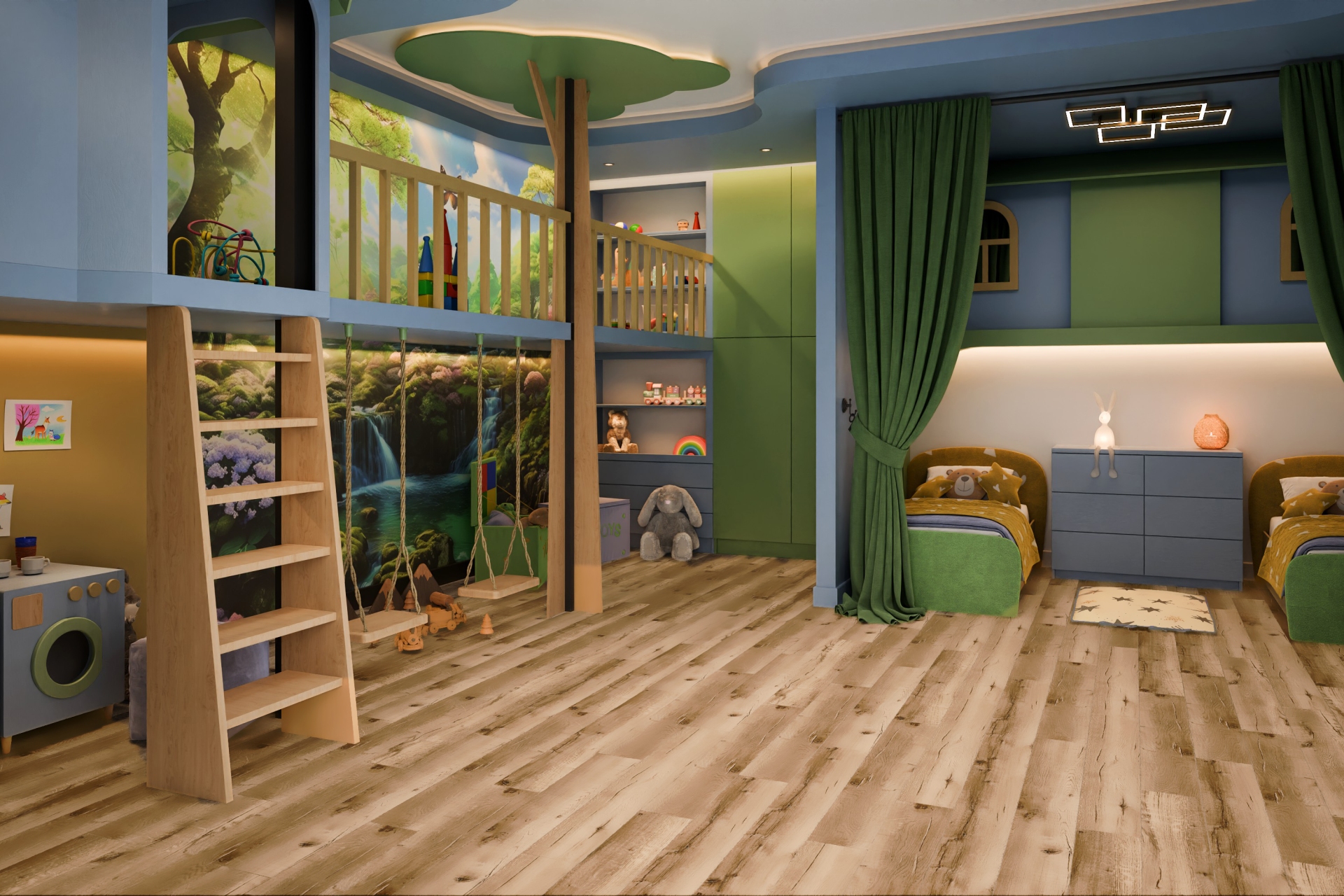 Кварцевый SPC ламинат из коллекции Family поможет создать уют в гостиной, спальне, детской