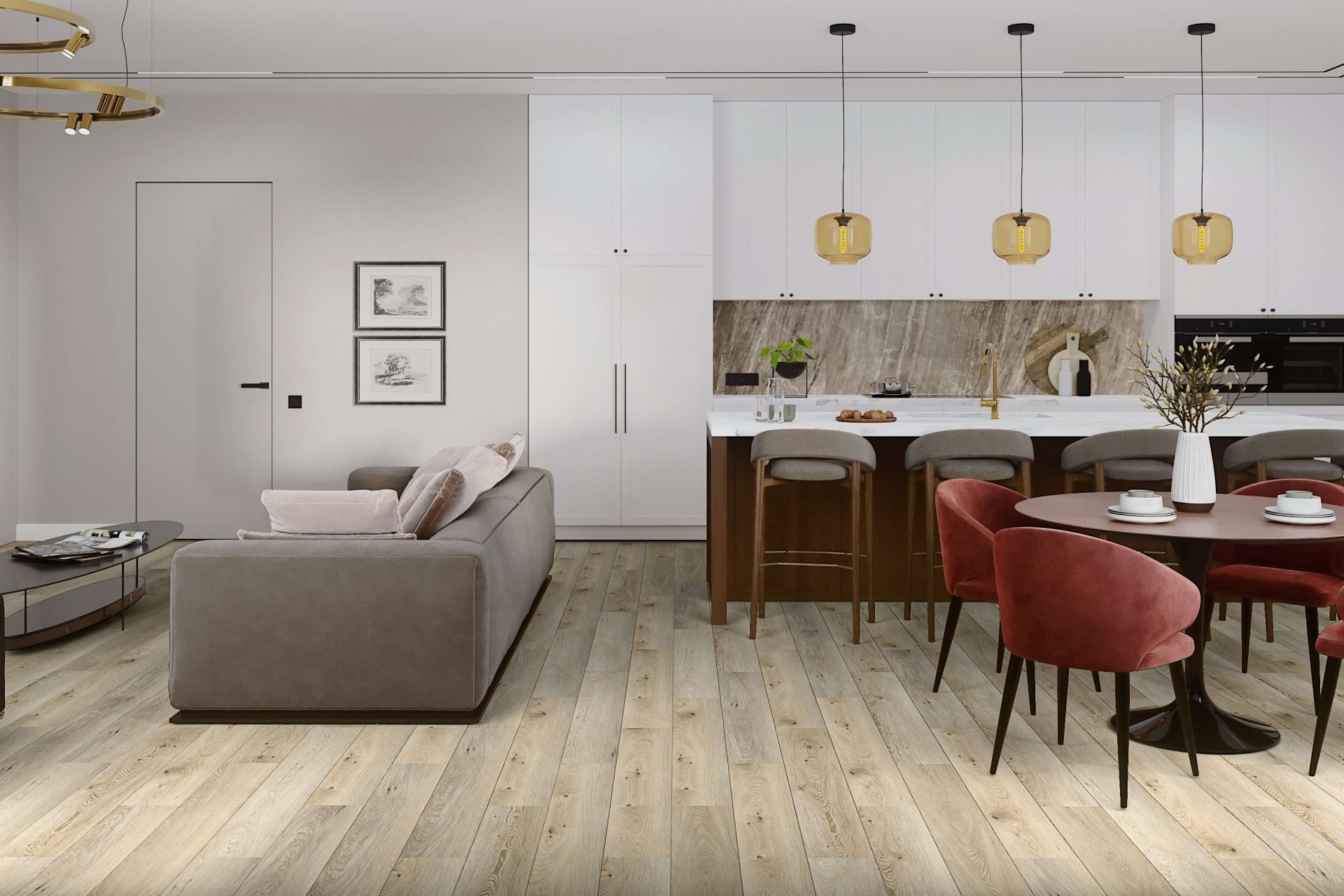 Кварцевый SPC ламинат из коллекции Family поможет создать уют в гостиной, спальне, детской