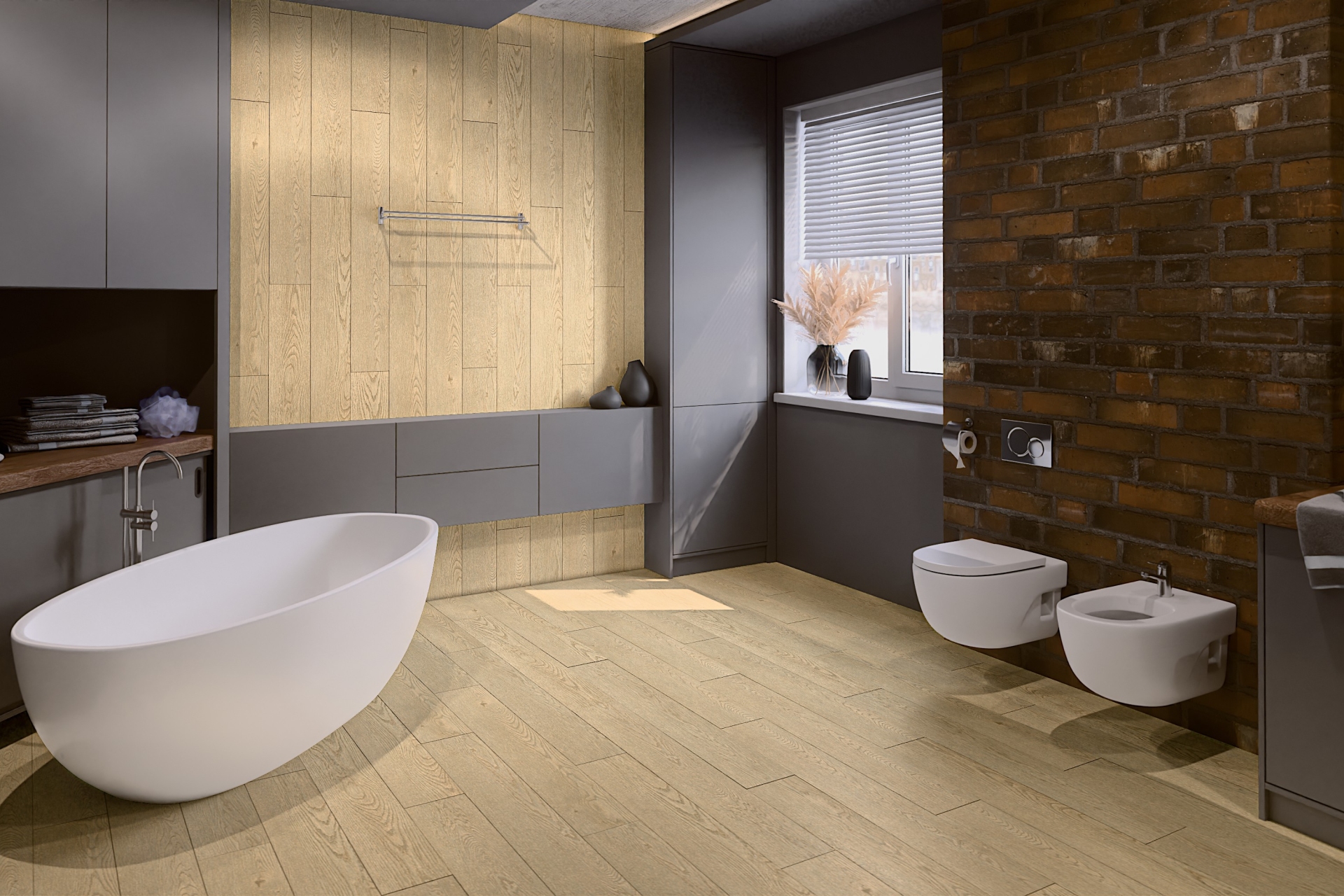 С мужем прошлым летом купили плитку SPC производителя Дэми Флор для ванной и туалета. И это было замечательным решением. Плитка абсолютно влагостойкая, по плотности такая же как и керамогранит. Укладывается она без клея, с помощью замков. Главное — чтобы черновой пол был максимально ровным. По внешнему виду — 100% камень. И на ощупь тоже. Вот только пол очень теплый в отличие от камня или привычного керамогранита. Для ванной это очень актуально, ходить босиком приятно.